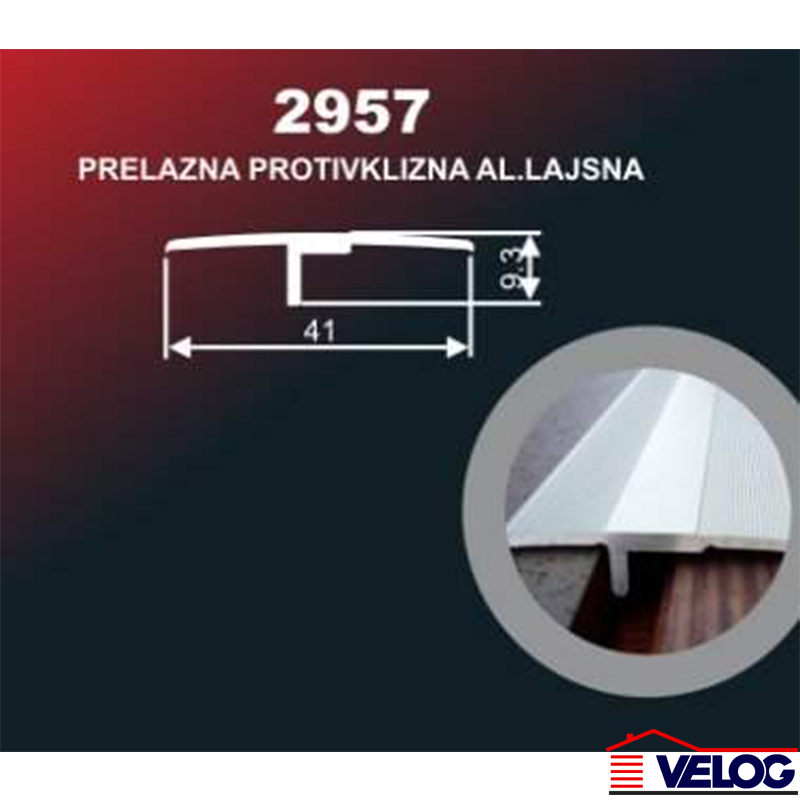 | Primena | Pogodna je za korišćenje na spojevima površina iste visine, istih ili različitih materijala. Aluminijumske lajsne – podni profili za pod postavljaju se pri ugradnji keramičkih pločica, laminata, ili druge vrste podova, i štite isti od habanja, vlage i samim tim mu produžavaju vek trajanja. Prelazna lajsna kao ravan ili poluobli profil služe za spoj podnih površina koje mogu biti u istom nivou. |