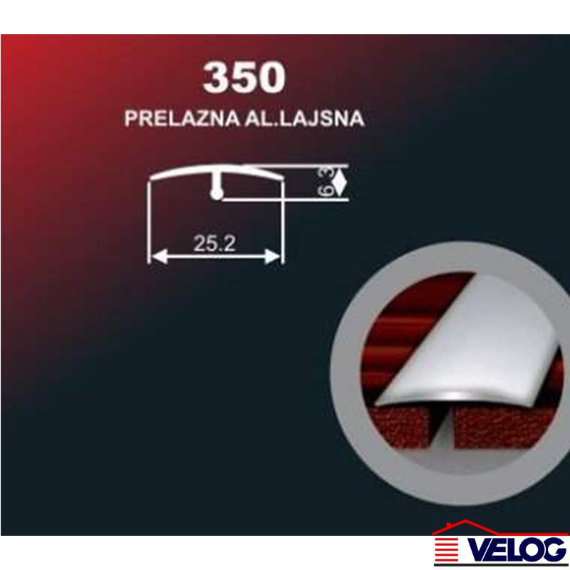 | Primena | Pogodna je za korišćenje na spojevima površina iste visine, istih ili različitih materijala. Aluminijumske lajsne – podni profili za pod postavljaju se pri ugradnji keramičkih pločica, laminata, ili druge vrste podova, i štite isti od habanja, vlage i samim tim mu produžavaju vek trajanja. Prelazna lajsna kao ravan ili poluobli profil služe za spoj podnih površina koje mogu biti u istom nivou. |
