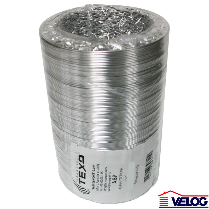 Opis proizvoda ALUTEX-ASP je veoma laka, savitljiva, neizolovana cev namenjena za ugradnju u sisteme ventilacije i aspiracije. Izgrađena je od višeslojnog, poliesterom laminiranog aluminijuma, ojačanog spiralom od patentirane žice. Zbog svoje izuzetne savitljivosti, veoma lako se montira i na okrugle i na ovalne priključke. U slučaju gorenja, zahvaljujući primenjenim materijalima ne oslobađa toksične gasove. U odnosu na zahteve prema DIN 4102, proizvod je  klasifikovan kao kategorija B1 / teško zapaljivi materijal.