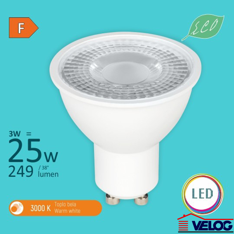 | Karakteristike | • LED:SMD • Tip grla:GU10 • Dimenzija sijalice:Ø50 x H55mm • Oblik:MR16 • Radni napon:220~240V • Radna frekvencija:50/60 Hz • Nominalna struja proizvoda:30mA • Power factor:>0,5 • Snaga (procenjena):3W • Potrošnja elek. energije:3 Kwh/ 1000h • Energetska efikasnost 2019.:F • Ekvivalent (LED-Inkandes.):3W⇔25W • Lumen / Watt:80-90 • Lumen flux (nom.):249 (lm) • Temp. boje svetl.:3000 K (Toplo bela) • Vreme trajanja zagrev. do .:< 1s • Vreme startovanja:≤ 0,5 s • Ugao rasipanja svetlosti (.:38º • CRI - indeks reprodukcije.:≥80(Ra) • Faktor odražavanja svetlo.:≥0,8% / 6000h • Faktor LLMF na kraju nom. .:70% • Faktor preživljav. sij. (.:≥0,9/6000h • Indeks konzistentnosti boj.:≤ 6 sdcm • IP zaštita:IP20 • Materijal:Termoplastika • Stepen električne zaštit.:II klasa • Životni vek:20.000 h na 25° C • Sadržaj žive (Hg):Hg=0.0 mg • Temperatura okoline:-20~ +40 °C • Dimabilnost:Ne • ON-OFF ciklus prekida:10.000 X • Ispravno odlag. nakon upot.:WEEE • Napomena:Usmerena sijalica • Upotreba u domaćinstvu:Da • Upotreba u potpuno zatvore.:Ne • Upotreba u vlažnim prosto.:Ne • Dizajn vrha sijalice:Mat |
