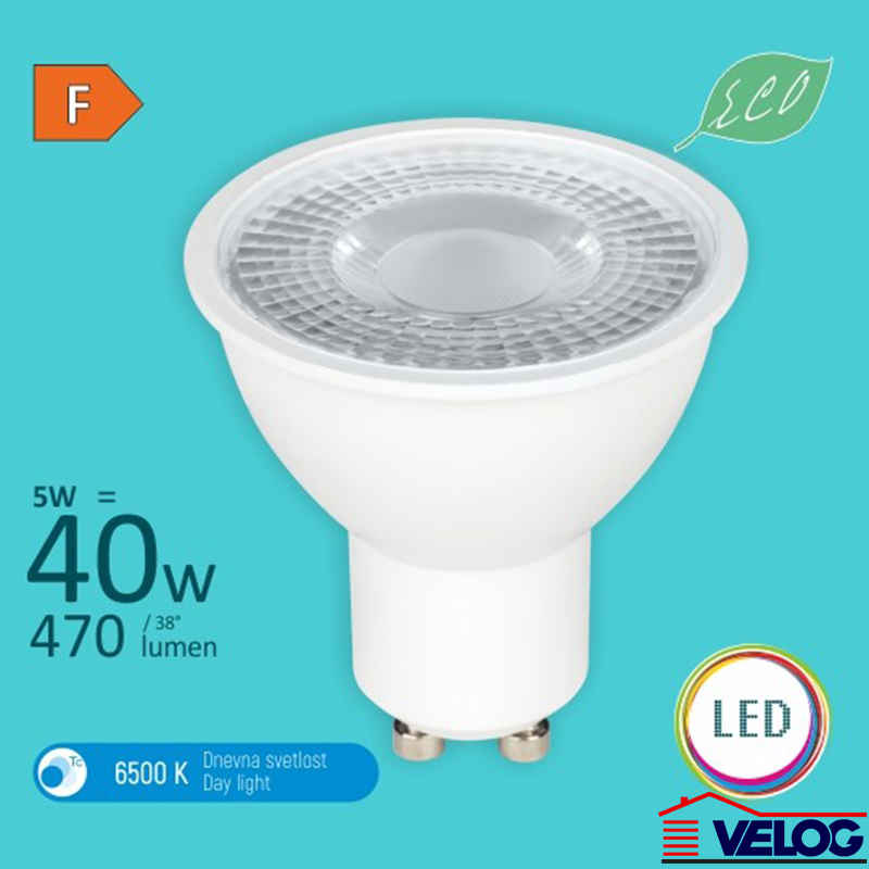 | Karakteristike | • LED:SMD • Tip grla:GU10 • Dimenzija sijalice:Ø50 x H55mm • Oblik:MR16 • Radni napon:220~240V • Radna frekvencija:50/60 Hz • Nominalna struja proizvoda:50mA • Power factor:>0,5 • Snaga (procenjena):5W • Potrošnja elek. energije:5 Kwh /1000h • Energetska efikasnost 2019.:F • Ekvivalent (LED-Inkandes.):5W⇔40W • Lumen / Watt:80-90 • Lumen flux (nom.):470 (lm) • Temp. boje svetl.:6500 K (Dnevna svetl.) • Vreme trajanja zagrev. do .:< 1s • Vreme startovanja:≤ 0,5 s • Ugao rasipanja svetlosti (.:38º • CRI - indeks reprodukcije.:≥80(Ra) • Faktor odražavanja svetlo.:≥0,8% / 6000h • Faktor LLMF na kraju nom. .:70% • Faktor preživljav. sij. (.:≥0,9/6000h • Indeks konzistentnosti boj.:≤ 6 sdcm • IP zaštita:IP20 • Materijal:Termoplastika • Stepen električne zaštit.:II klasa • Životni vek:20.000 h na 25° C • Sadržaj žive (Hg):Hg=0.0 mg • Temperatura okoline:-20~ +40 °C • Dimabilnost:Ne • ON-OFF ciklus prekida:10.000 X • Ispravno odlag. nakon upot.:WEEE • Napomena:Usmerena sijalica • Upotreba u domaćinstvu:Da • Upotreba u potpuno zatvore.:Ne • Upotreba u vlažnim prosto.:Ne • Dizajn vrha sijalice:Mat |