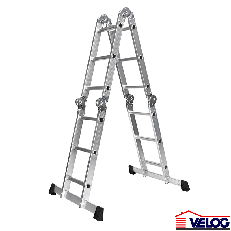 Merdevine aluminijumske sklopive poseduju Atest o bezbednosti, prema standardu EN131. Izrađene su od specijalne lagane legure alumijuma što im omogućava maksimalno opterećenje i do 150kg. Sastavljene su iz 4 dela, što pruža 4 različite opcije postavljanja. Dodatna platforma garantuje stabilnu potporu tokom radnih aktivnosti. Visina merdevina podešenih u poziciju platforma je 0.9m, dužina platforme je 1.62m. Debljina aluminijuma je 1.2mm. Četvorodelne, sa 4 mogućnosti kombinovanja Visina rasklopljenih merdevina: 337cm Izrađene od aluminijuma Maksimalno opterećenje: 150kg Testirano po EN131 standardu