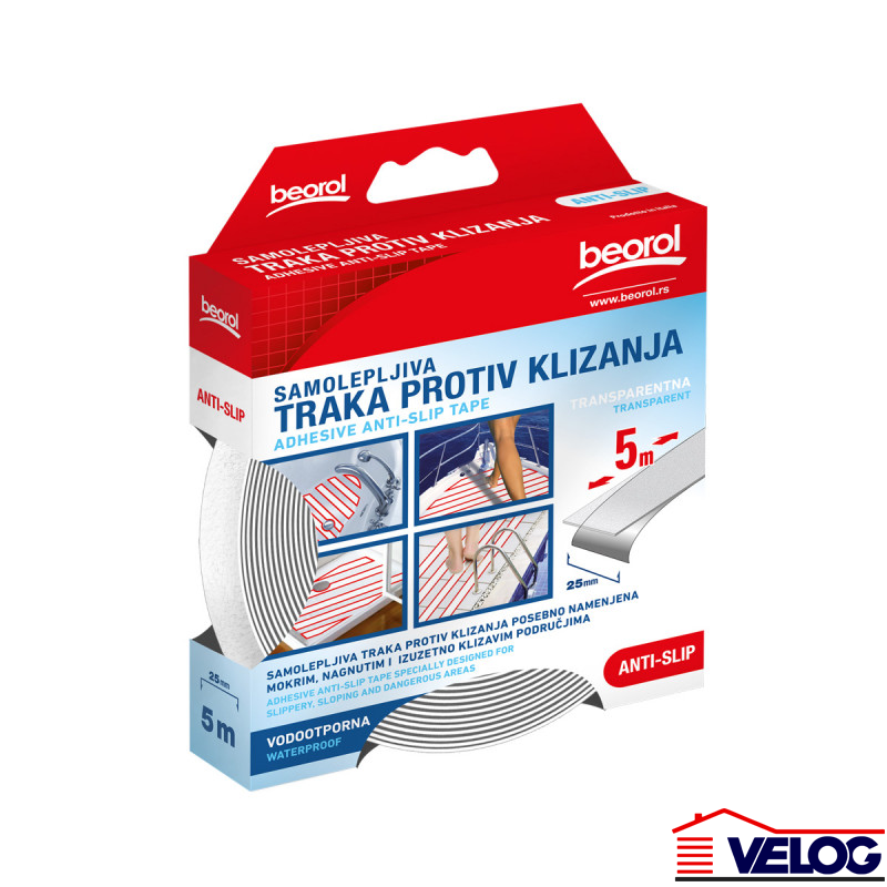 Samolepljiva traka protiv klizanja namenjena mestima koja su stalno izložena vodi posebno za kade i tuš kabine.
