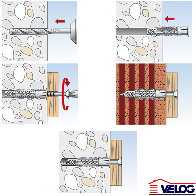 Univerzalno rešenje – primerena za svaki materijal. Tipla se umetne u provrt. Pouzdano drži u punim materijalima. U šupljikavim materijalima se širi. UX s prstenom –sprečava da tipla uđe preduboko u provrt. Za iver vijke i vijke za drvo. Minimalna dubina ankerisanja 75mm.