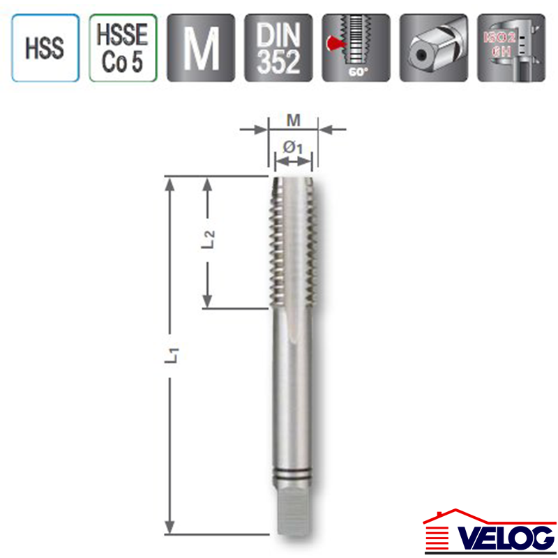 | Primena | Upotrebljavaju se za urezivanje navoja u otvorene i slepe rupe u čelik sa legurama i bez legura zatezne čvrstoće do 800 N/mm2, kovani čelik i nečelične materijale. Trodelna: 1. navojna ureznica: početak kod 5 - 6 koraka 2. navojna ureznica: početak kod 4 - 5 koraka 3. navojna ureznica: početak kod 2 - 3 koraka |