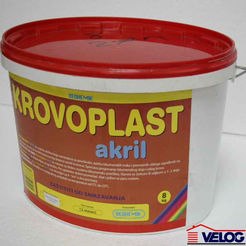 Vodena akrilna boja namenjena za površinsku zaštitu bitumenskih traka i premaznih obloga ugrađenih na spoljašnjim površinama hidroizolacionog Sistema ravnih krovova.