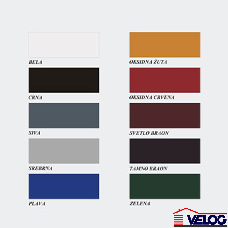 | Prednosti | • Bez temeljne boje • Direktno na koroziju • Bez prajmera za pocinkovane elemente • Brzo sušenje • Bez neprijatnih mirisa • Ekološki proizvod • Velika trajnost. |