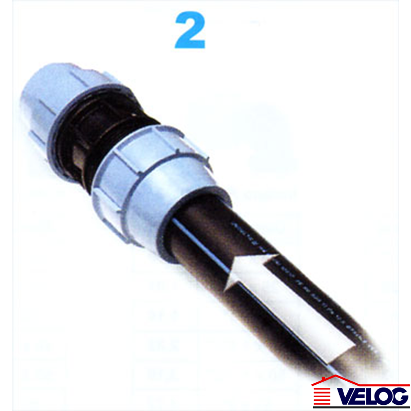 Spojnica - PP kompresioni fiting služi za spajanje polietilenskih cevi (okiten creva). Maksimalna radna temperature je 100°C. Pritisak (do 50mm) iznosi 16 bara.