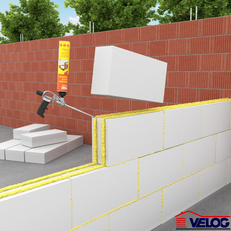 | Primena | Jednokomponentni niskoekspandirajući poliuretanski lepak sa visokom konačnom čvrstoćom vezivanja namenjen je za zidanje pregradnih zidova (kao zamena za malter) i lepljenje različitih građevinskih materijala, kao što su drvo, gvožđe. Ima dobro prianjanje na opeku, beton, gasbeton, kamen, drvo i druge građevinske i izolacione materijale. Lepak se stvrdnjava pomoću vlage iz vazduha i iz podloge. TKK PU FIX BUILDING BLOCK ADHESIVE je jednokomponentni poliuretanski lepak niske ekspanzije sa visokom konačnom čvrstoćom vezivanja za izgradnju unutrašnjih pregradnih zidova i lepljenje različitih građevinskih materijala. |